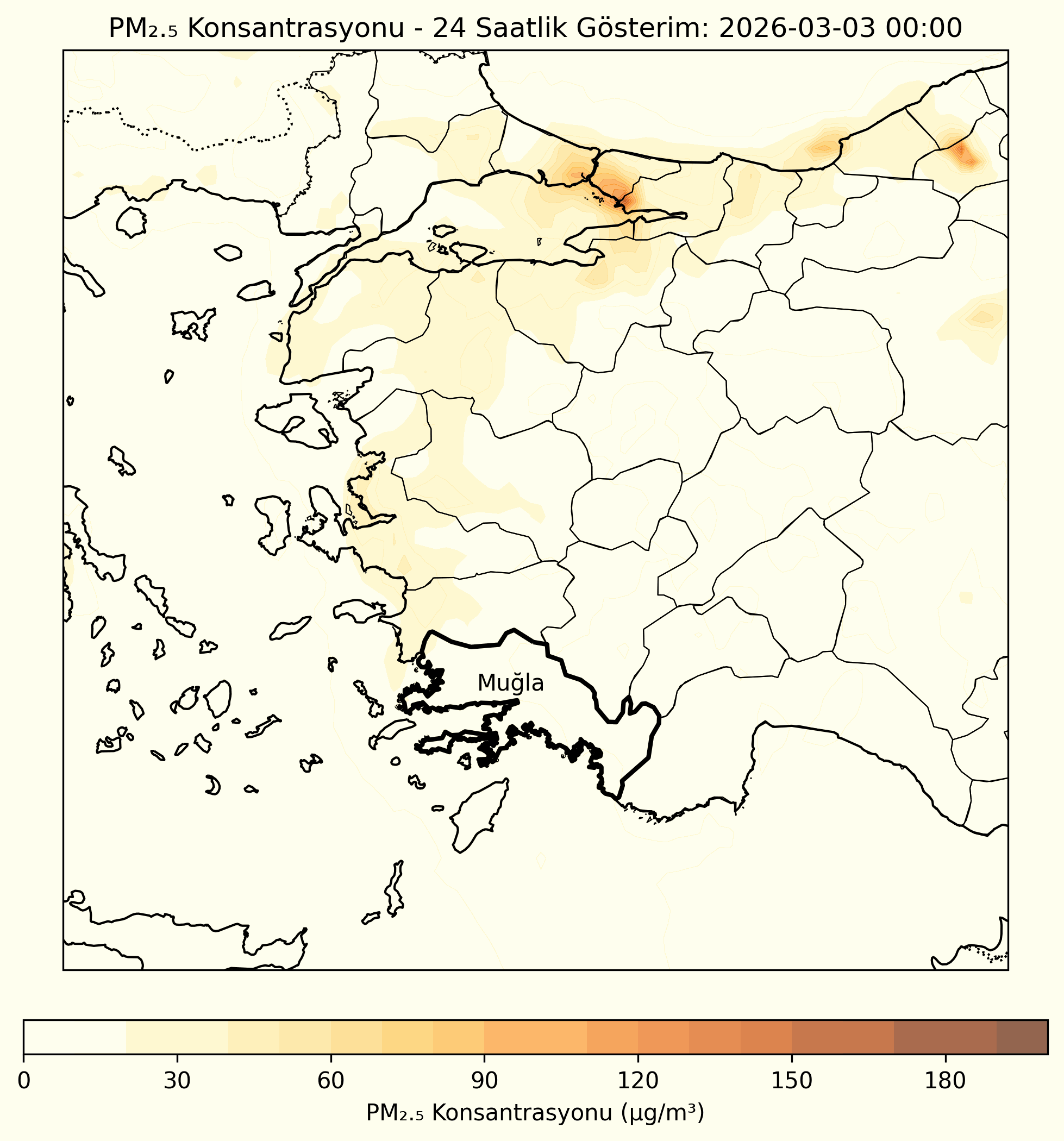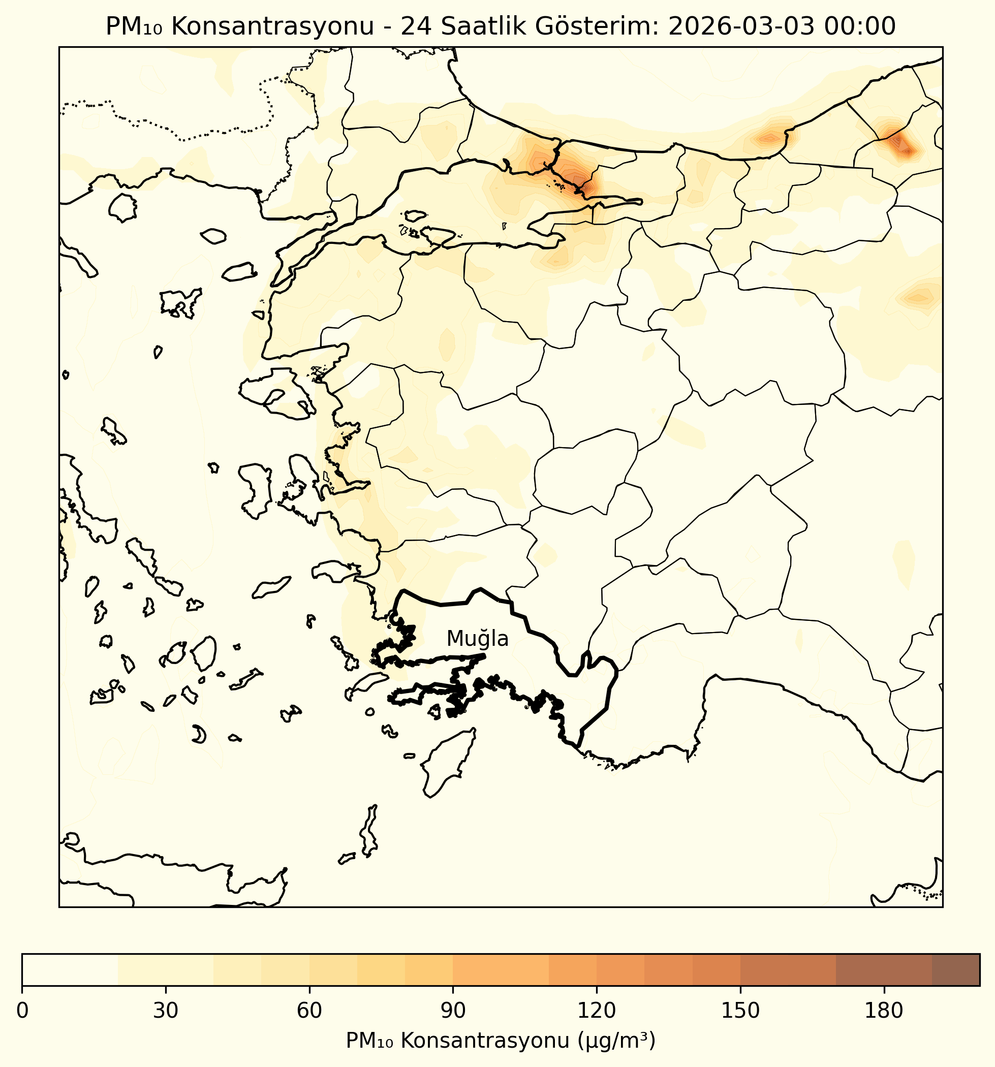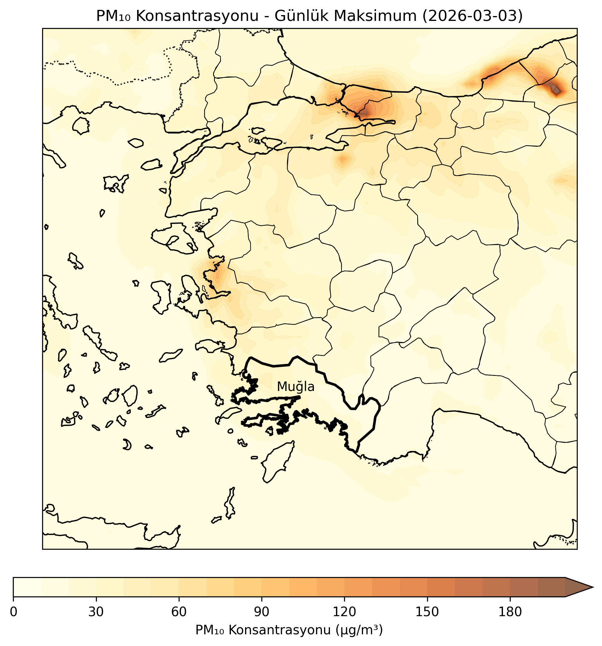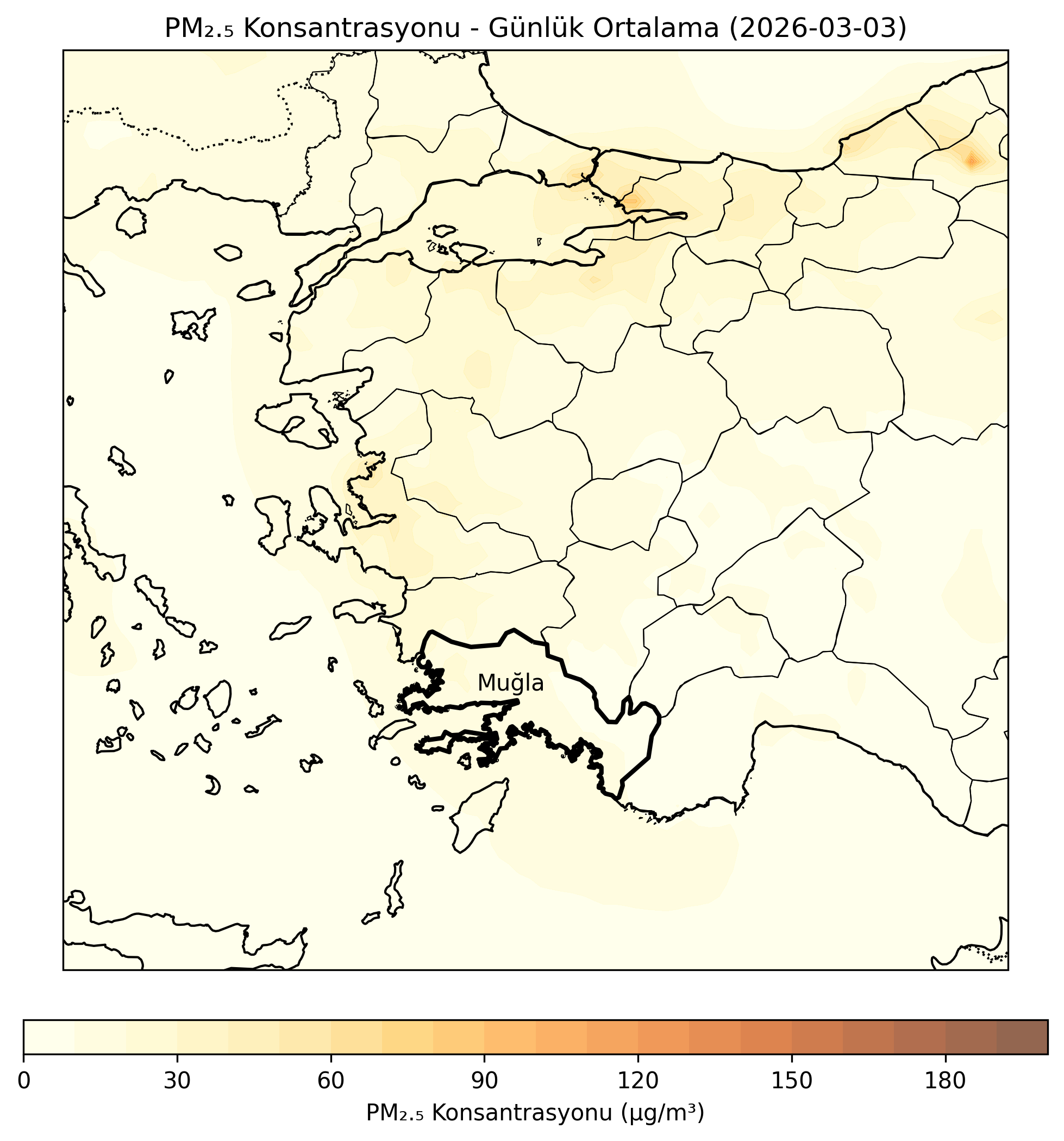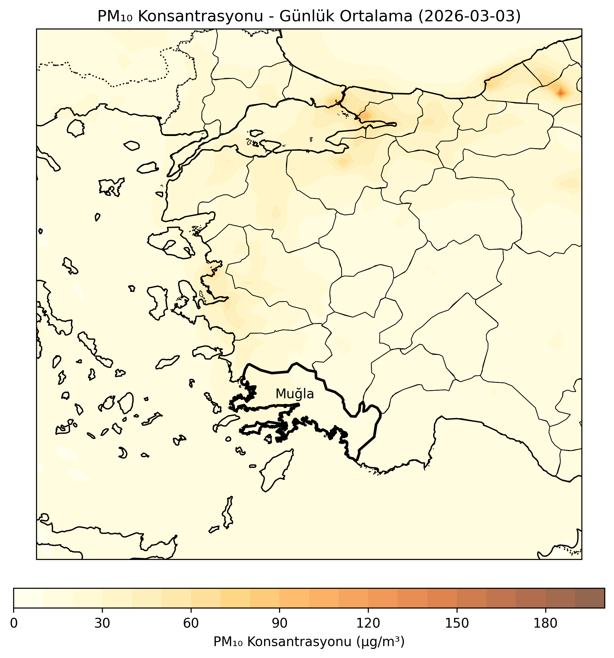CAMS (Copernicus Atmosphere Monitoring Service) verilerine dayalı olarak oluşturulan partikül madde tahminleri, önümüzdeki 3 gün için bölgemizdeki partikül madde konsantrasyonlarının değişimini göstermektedir.